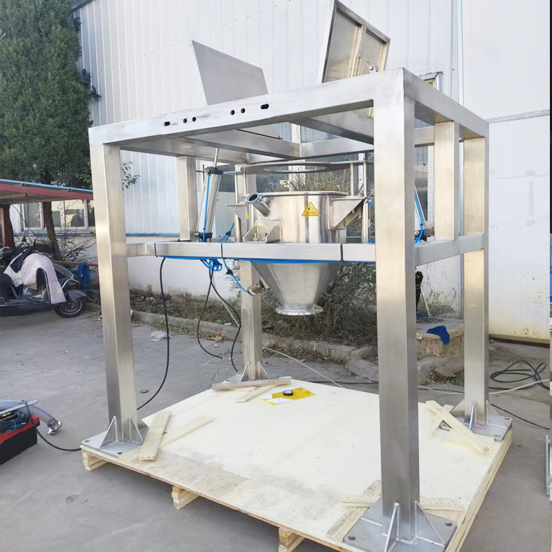 吊裝定位:通過(guò)叉車或電動(dòng)葫蘆將噸袋提升至進(jìn)料口,利用夾袋裝置固定袋口,確保噸袋與設(shè)備密封對(duì)接。