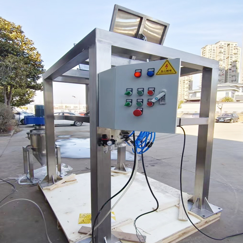 輔助卸料:若遇易結(jié)塊物料,設(shè)備內(nèi)置拍打裝置或振動(dòng)篩分機(jī)構(gòu)可同步松散物料,保障流暢卸料。針對(duì)含氣量大的粉體,設(shè)備增設(shè)氣體平衡閥,釋放袋內(nèi)氣壓,防止揚(yáng)塵或物料噴濺。