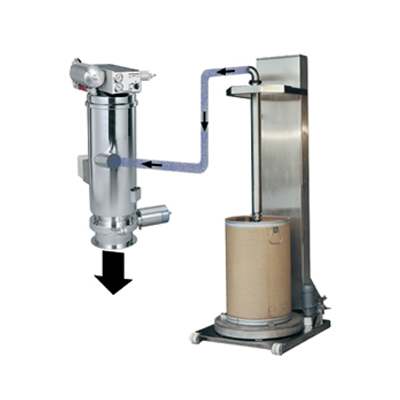 a) -真空泵通過真空輸送設備的分離容器產生真空。將物料從進料口通過吸料軟管與吸料口吸入。