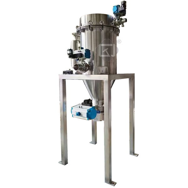 (2)在分離容器的過濾倉內(nèi)分離空氣與物料,將物料收集在料倉中。旋風分離器阻止細小粉末進入過濾器,以提高過濾器的效率。