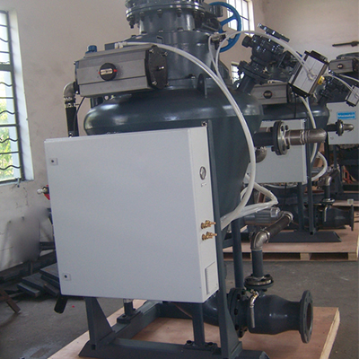 在進料過程中,物料通過專用進料閥進入發(fā)送罐中。發(fā)送罐內(nèi)的氣體通過平衡閥釋放出去,便于進料,同時消除了阻礙物料流動的反向壓力。一旦發(fā)送罐被裝滿,由料位計、電接點壓力表或者稱重傳感器發(fā)出信號,專進料閥和排氣閥關(guān)閉并且密封。然后往發(fā)送罐內(nèi)通入壓縮氣體,當達到一定值時,出料閥自動開啟,發(fā)送罐內(nèi)的壓縮氣體與物料相混合,同時向輸送管線施壓。物料以分立的組塊形式開始輸送,直到發(fā)送罐和輸送管線內(nèi)的物料排空為止。